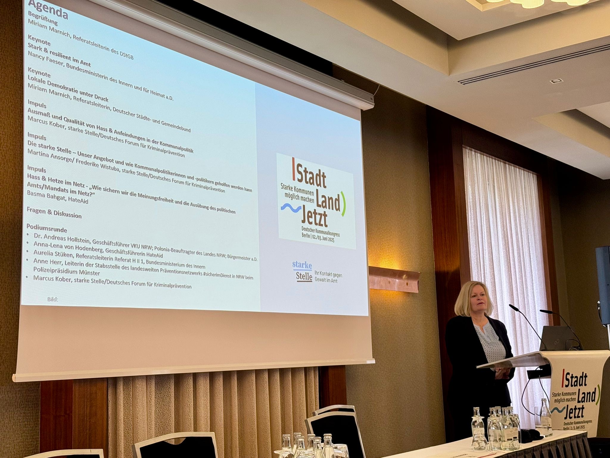 Im Panel „Stark & resilient im Amt“ beim Deutschen Kommunalkongress 2025 stand der Umgang mit Hass, Anfeindungen und Bedrohungen gegenüber kommunalen Amts- und Mandatsträger*innen im Mittelpunkt.
