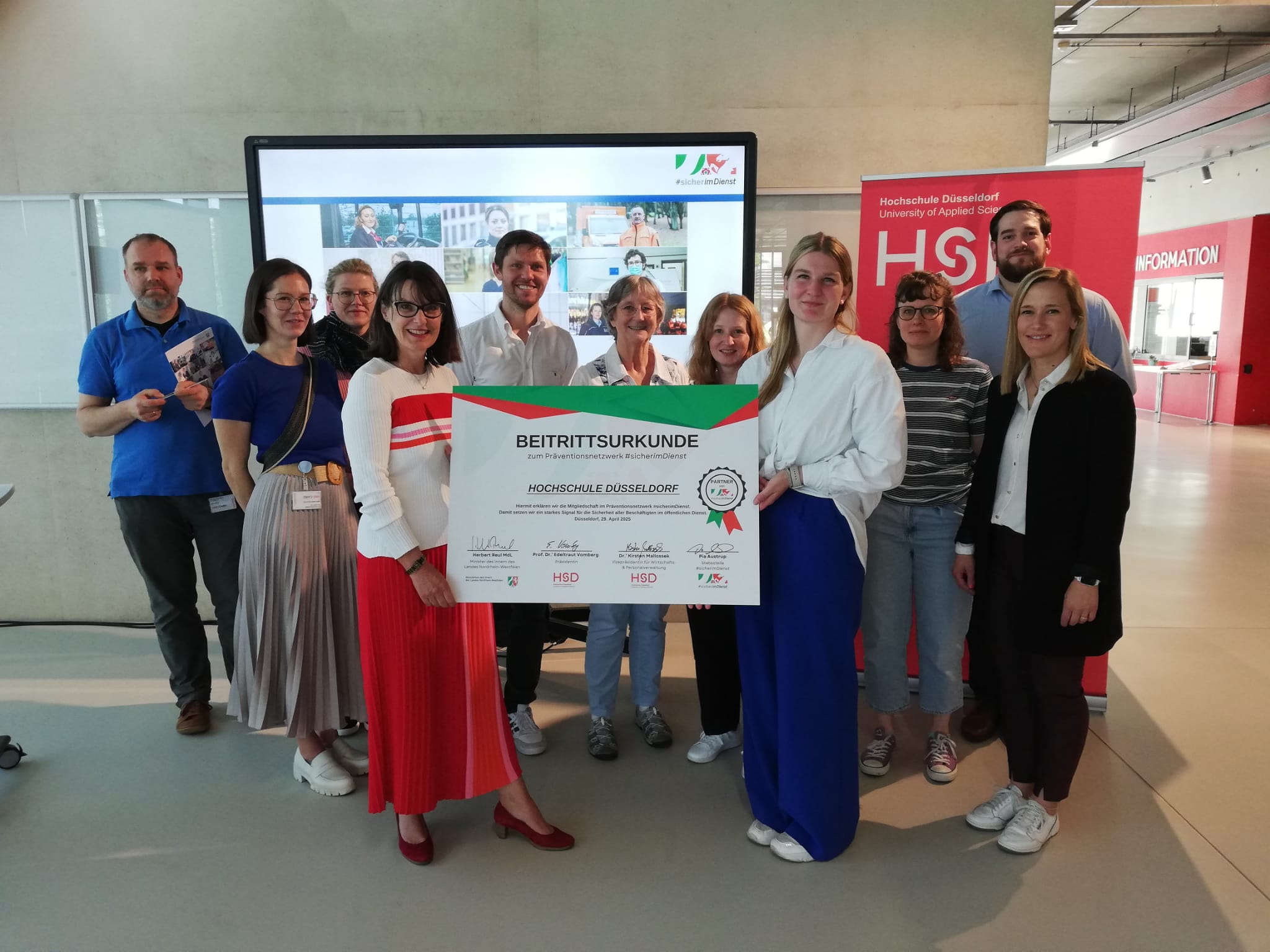 Die Hochschule Düsseldorf (HSD) verstärkt ihr Engagement für ein sicheres Arbeits- und Lernumfeld und ist dem Präventionsnetzwerk #sicherimDienst beigetreten. Durch diesen Schritt setzt die HSD ein klares Zeichen gegen Gewalt und für den Schutz ihrer Beschäftigten und Studierenden.