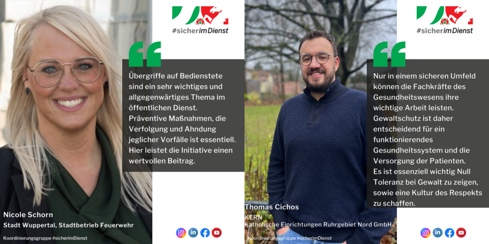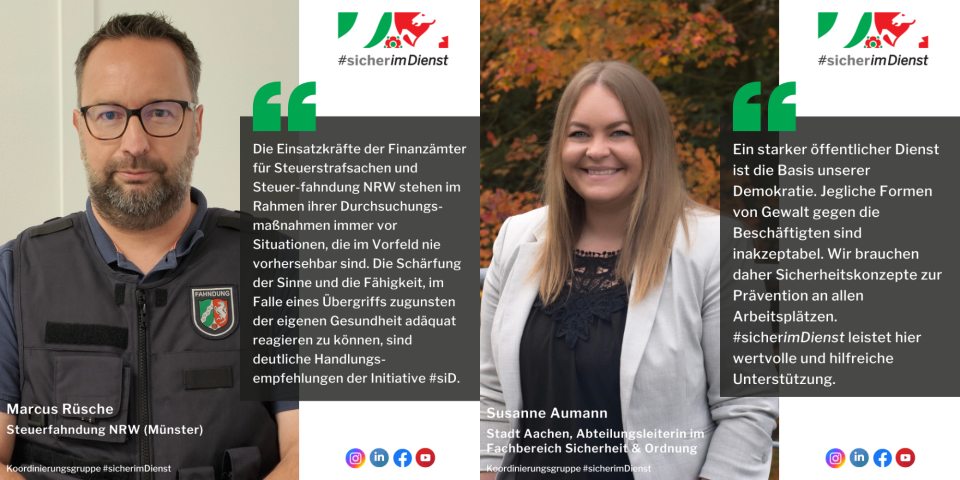 „Sicher im Dienst“ ist eine Kampagne des Landes Nordrhein-Westfalen im Rahmen der NRW-Initiative „Mehr Schutz und Sicherheit von Beschäftigten im öffentlichen Dienst“. Kernelemente der Kampagne sind ein übergreifender Präventionsleitfaden sowie ein landesweites Präventionsnetzwerk.