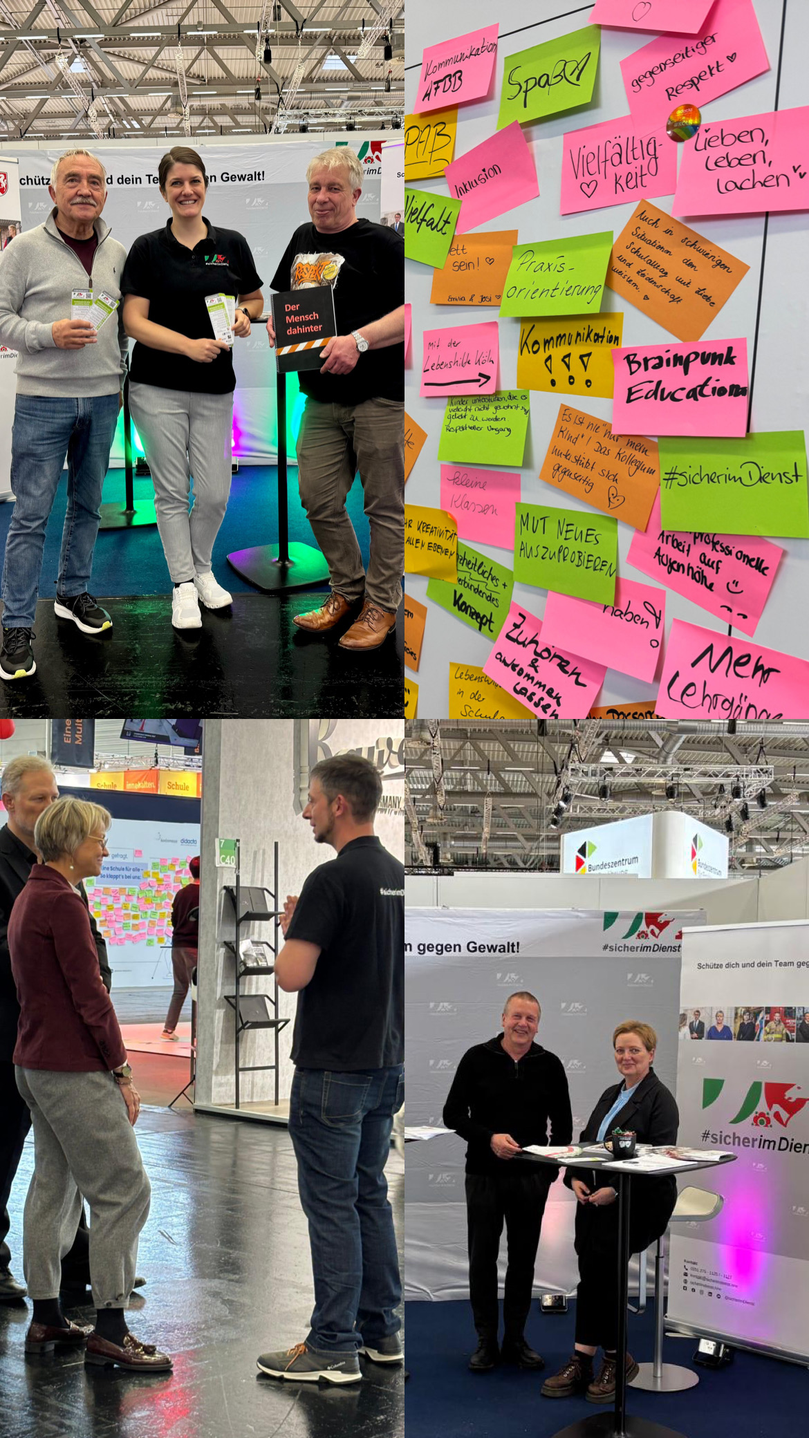 Über fünf Messetage hinweg standen Gespräche im Mittelpunkt: Wir konnten viele Lehrkräfte erreichen, für das Thema Gewaltschutz am Arbeitsplatz sensibilisieren und unsere Materialien praxisnah vorstellen. Besonders wertvoll war der direkte Austausch über konkrete Bedarfe, etwa unsere Erfahrungen aus dem Netzwerk zu pädagogischen Tagen.