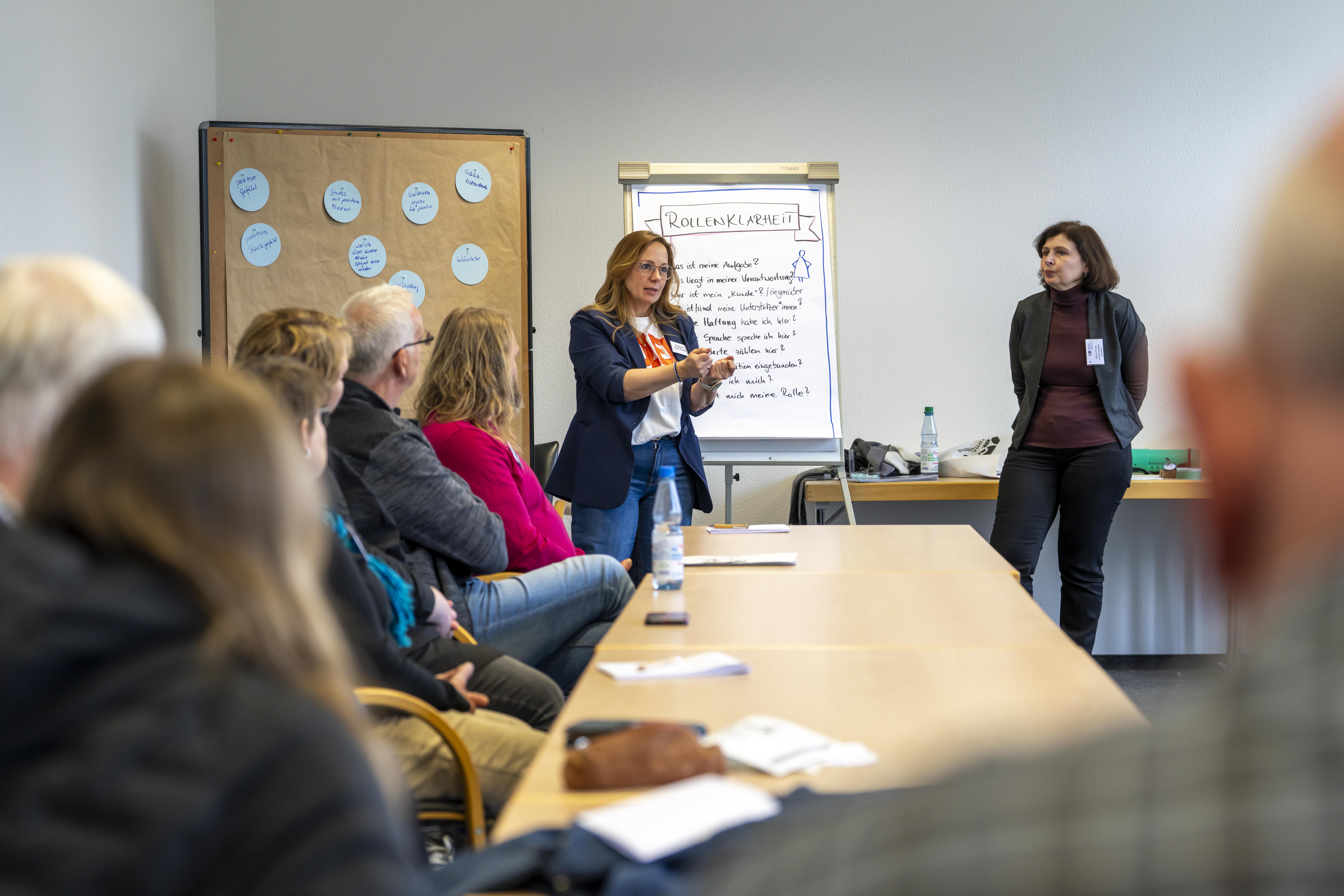 Im Mittelpunkt des ersten Veranstaltungstages stand der fachliche Austausch. In einer Praxiswerkstatt arbeiteten die Teilnehmenden in Kleingruppen zu zentralen Fragestellungen – von bewährten Ansätzen über organisatorische Strukturen bis hin zu Führungsverantwortung und zukünftigen Bedarfen.