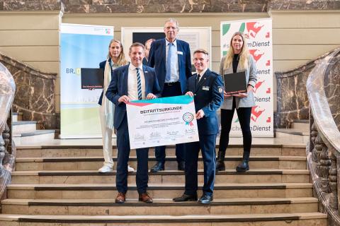 Es ist soweit: Die Bezirksregierung Düsseldorf ist am 25.09.2023 dem Präventionsnetzwerk #sicherimDienst beigetreten, das der NRW-Innenminister Herbert Reul 2022 vorgestellt hatte. Das Netzwerk möchte gemeinsam für "Gewalt gegen Beschäftigte" sensibilisieren, praxisnahe Handlungsempfehlungen austauschen und durch öffentliche Aktionen wie die offiziellen Netzwerk-Beitritte starke Signale setzen.